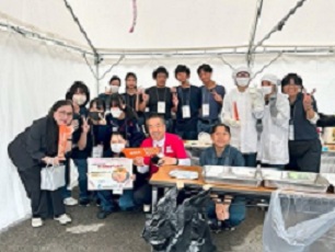 国スポ・軟式野球の会場にて、甲南高校生がヒヨコから育てた手羽先のから揚げをおふるまいしてきました。