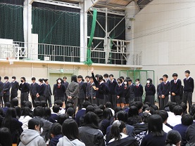 本年度の人事異動で高校・高等養護学校を離任された先生から2・3年生に対し、お話をいただきました。生徒会からお礼の挨拶と花束を離任される先生に送りました。