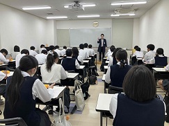 2年生を対象に、多目的室にて性教育LHRを行いました。助産師の斉藤智孝氏に「からだのしくみを知る」と題して、ご講演いただきました。男性のからだ、女性のからだ、自分のことも相手のこともしっかり知っておくことが必要であること、そのうえで自分や相手を大切にできるということを学びました。