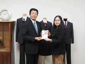 公益財団法人湖南グループ奨学会代表理事 金原様より、本校の理科教育設備補助のご寄付の目録をいただきました。