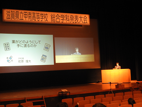 地場産業である薬業を支える施設として甲賀町にある「滋賀県薬業技術振興センター」に見学に行き、薬事行政として行っている仕事の説明を聞いたり、レンタルラボとして使われている施設や装置を見せていただいたりして、自分たちが学んでいる薬業について理解を深めました。